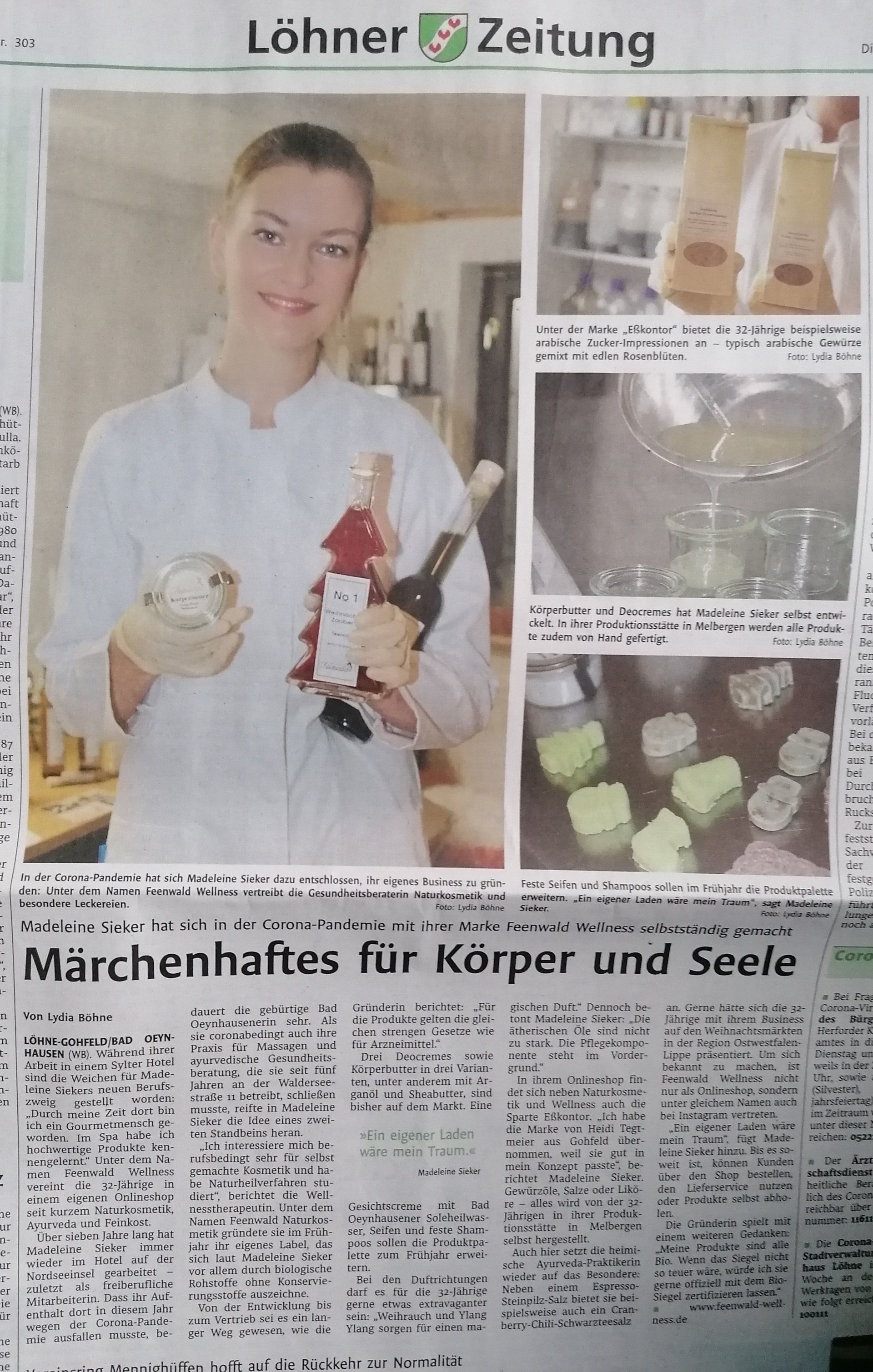 Heute steht im Lokalteil des Westfalenblattes ein großer Artikel über Feenwald Wellness.